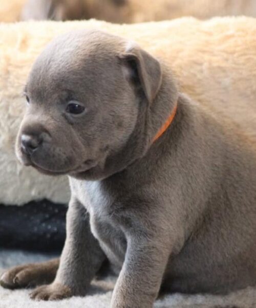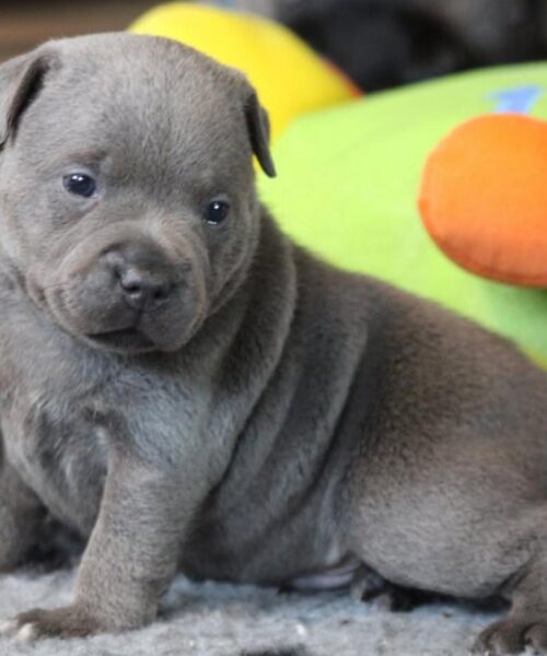 We take pride in the careful attention given to each blue Staffy puppy for sale, raised in our Glasgow home. Each puppy comes with full KC registration, health documentation, and has received early socialization and interaction. They are microchipped, dewormed, vaccinated, and include detailed care guidelines.